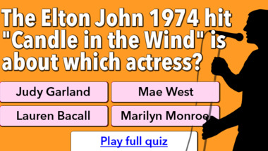 6/10 is the score to beat in this trivia quiz to put yourself over the average quiz taker. But you're probably going to be able to answer questions "Roberta Flack sang about the first time she ever she saw your what?" and "The Elton John 1974 hit "Candle in the Wind" is about which actress?" easy!
