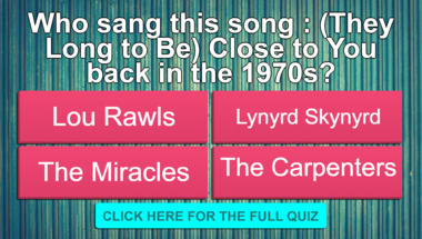 Look forward to questions like "Who sang this song : "(They Long to Be) Close to You" back in the 1970s?" and "Who sang this song : "Knowing Me, Knowing You" back in the 1970s?"