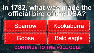 6/10 is what people on average are scoring in this trivia quiz so far. Are you ready to answer questions like "In 1782, what was made the official bird of the USA?" and "Central Park is a world-famous park In what city?"