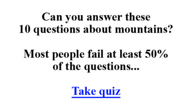 In this fun trivia quiz we're going to ask questions like "What is the world´s longest mountain range, that lies as a continuous chain of highl.." and "What mountains divide France from Spain?".