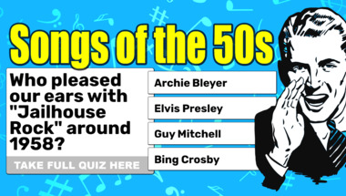 In this fun trivia quiz we're going to ask questions like "Who pleased our ears with "Jailhouse Rock" around 1958?" and "Who pleased our ears with "Que Sera, Sera (Whatever Will Be, Will Be)" around 1957?".