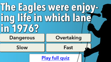 7/10 is what people on average are scoring in this trivia quiz so far. Are you ready to answer questions like "Lobo were singing about me, you and a dog named what?" and "The Eagles were enjoying life in which lane in 1976?"