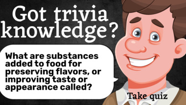 In this fun trivia quiz we're going to ask questions like "What are substances added to food for preserving flavors, or improving taste or appea.." and "If you eat 25 sweets from a tub that contains 626 how many sweets do you have left?".