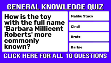 6/10 is the score to beat in this trivia quiz to put yourself over the average quiz taker. But you're probably going to be able to answer questions "How is the toy with the full name 'Barbara Millicent Roberts' more commonly known?" and "90 Degrees is known as what?" easy!