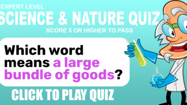 Look forward to questions like "Which word means "a large bundle of goods"?" and "What type of molecule is CH3OH?"