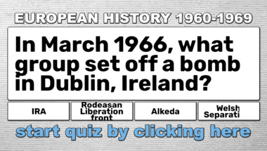 If you can answer "In February of 1960, Queen Elizabeth II of the United Kingdom issued an order stating.." and maybe even "In March 1966, what group set off a bomb in Dublin, Ireland?" there is a good chance that you're going to beat the average score of 6/10 in this trivia quiz