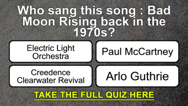 If you can answer "Who sang this song : "Bad Moon Rising" back in the 1970s?" and maybe even "Who sang this song : "American Pie" back in the 1970s?" there is a good chance that you're going to beat the average score of 6/10 in this trivia quiz