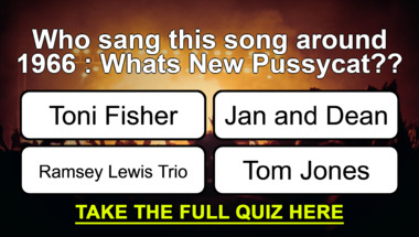 6/10 is what people on average are scoring in this trivia quiz so far. Are you ready to answer questions like "Who sang this song around 1966 : "What's New Pussycat?"?" and "Who sang this song around 1965 : "Hello, Dolly!"?"