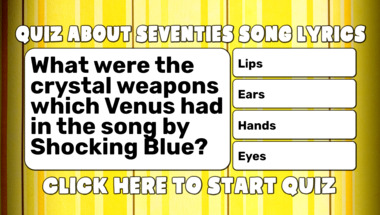 5/10 is the score to beat in this trivia quiz to put yourself over the average quiz taker. But you're probably going to be able to answer questions "What were the crystal weapons which Venus had in the song by Shocking Blue?" and "In "Heroes", David Bowie said he wished he could swim like which animals?" easy!