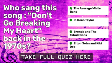 If you can answer "Who sang this song : "Don't Go Breaking My Heart" back in the 1970s?" and maybe even "Who sang this song : "Here You Come Again" back in the 1970s?" there is a good chance that you're going to beat the average score of 6/10 in this trivia quiz