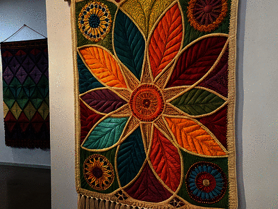 Which art form textile art, traditionally woven on a vertical loom?