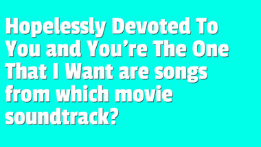 Look forward to questions like "Which actor played Indiana Jones in Raiders of the Lost Ark?" and "Hopelessly Devoted To You and You're The One That I Want are songs from which movie s.."