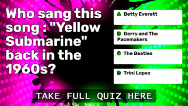 6/10 is the score to beat in this trivia quiz to put yourself over the average quiz taker. But you're probably going to be able to answer questions "Who sang this song : "What's New Pussycat?" back in the 1960s?" and "Who sang this song : "Yellow Submarine" back in the 1960s?" easy!
