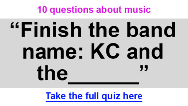 4/10 is the score to beat in this trivia quiz to put yourself over the average quiz taker. But you're probably going to be able to answer questions "Finish the band name: KC and the______." and "Hearsay topped the charts in 2001 with "Pure and …"?" easy!