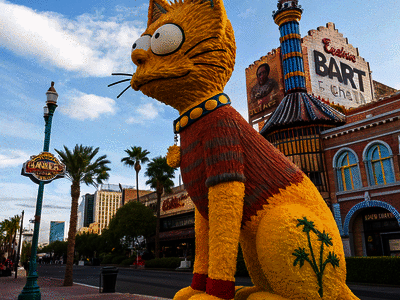 In the colorful world of Springfield, what's the name of the feline who shares the screen with Bart, Lisa, and a whole lot of donuts?
